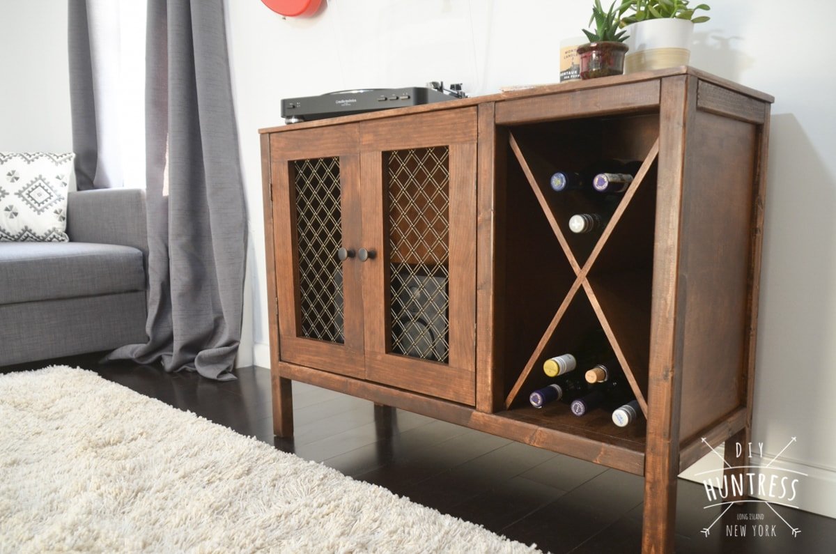 Creative solutions to common problems are our favorite! Sam, from DIY Huntress, and her significant other found themselves with a large collection of records and wine but no solution as to how to store and display their passions. So, they created this unique storage solution that is both good-looking and functional.